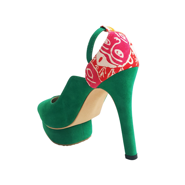 Fatimma Heritage Batik Betawi Upper: Delicate suede with heritage Batik Betawi motif. Lining: soft leather Sole: rubber Seamless Platform: 3cm Heels: 12cm Made in Indonesia