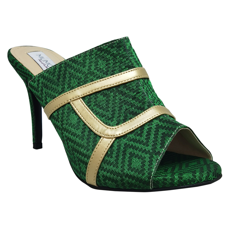 Gendis Tenun Color: Green Type: formal. Model: Peep toe ;sandal; stiletto Upper: Art fabric ; leather Lining: EVA Synthetic Sole: rubber Heels: 7 cm ;stiletto.