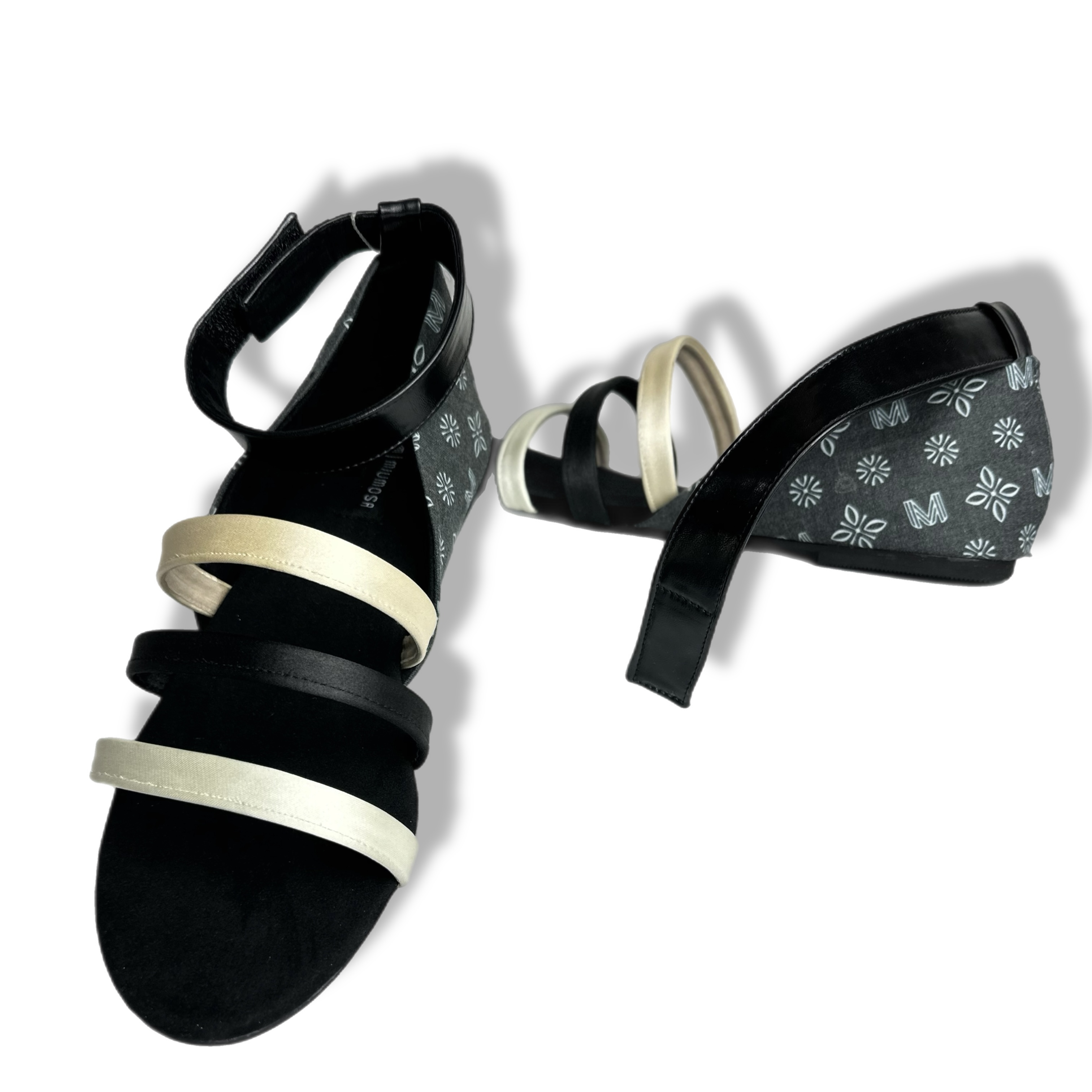 Strappy Sandal with Monogram Kawung Miumosa I Upper: satin silk, organic cotton I Lining: sheer velvet suede I Sole: Eva Synthetic I Spring/Summer Collection.