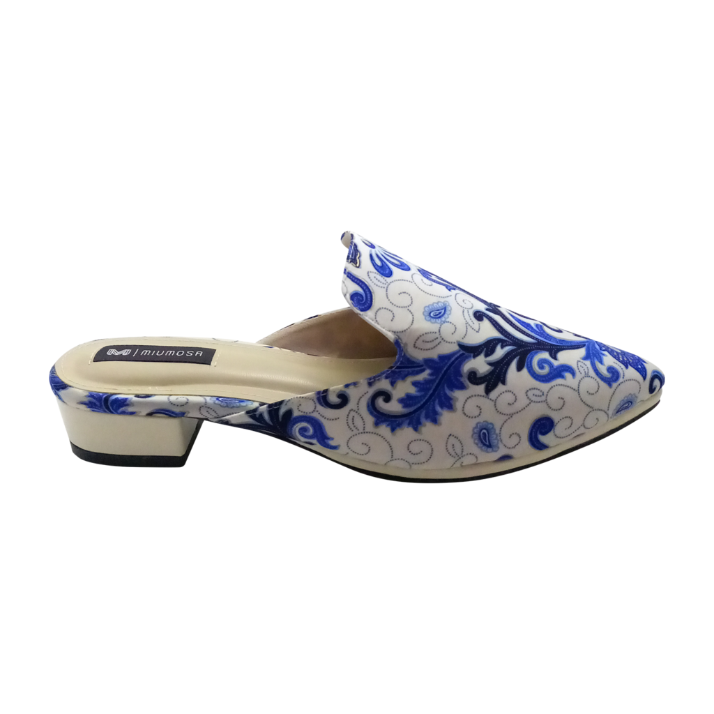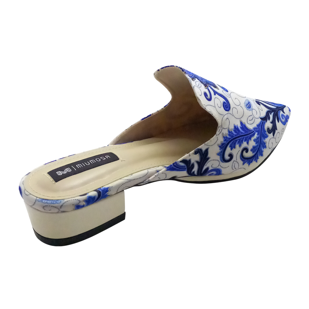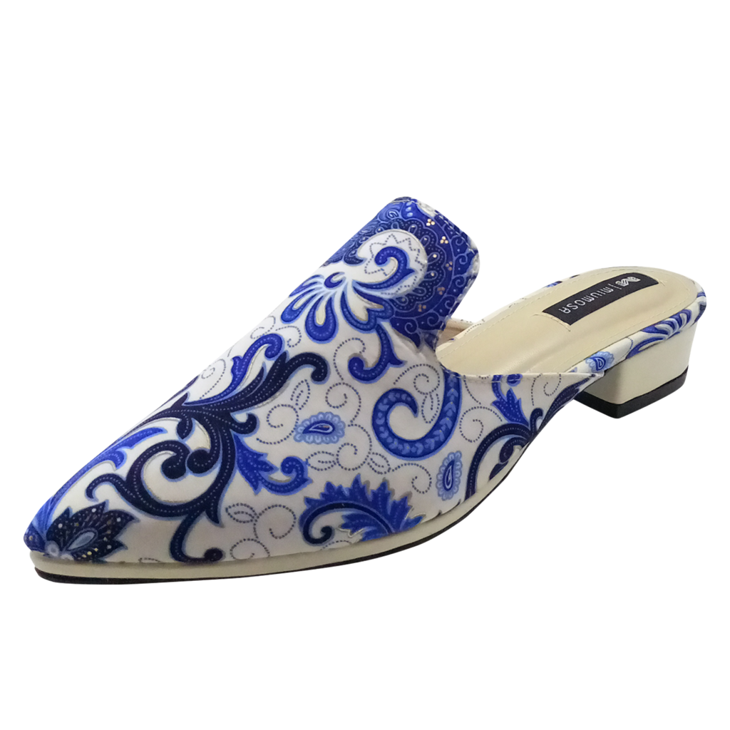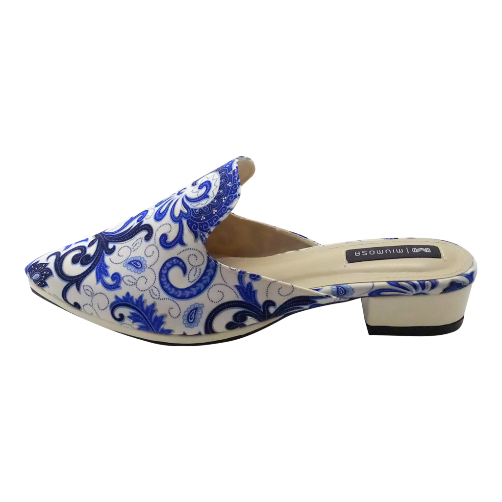 Maharani Series Slip-on Batik ; Cotton polyester batik printed indigo; Lining: suede; Sole: PU; and Heels: 3cm flat. New Arrivals.