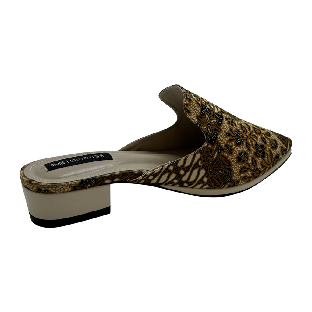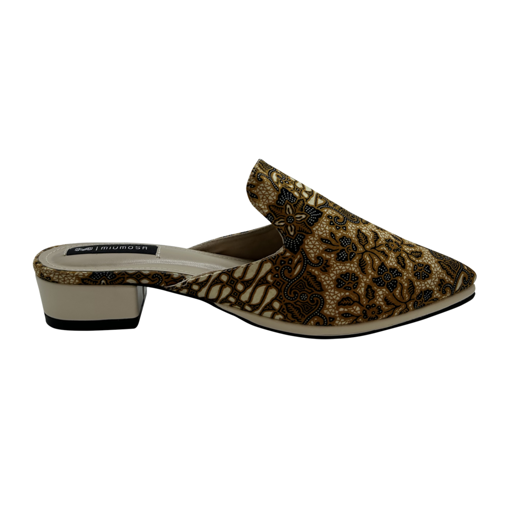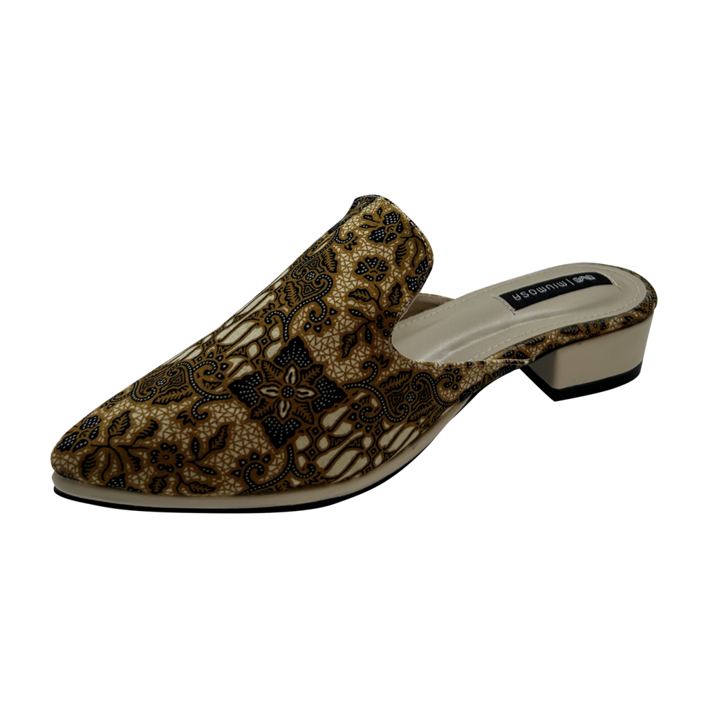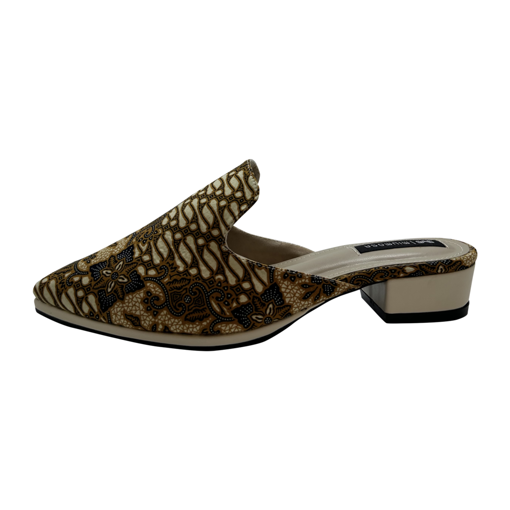 Maharani Series Slip-on Batik ; Cotton polyester batik printed Parang pattern; Lining: suede; Sole: PU; and Heels: 3cm flat. New Arrivals.