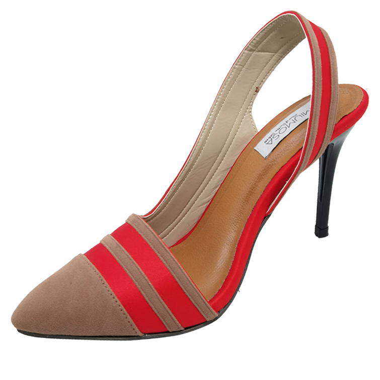 Pump with layer slingback Upper: satin and suede Lining: synthetic leather Sole: rubber with monogram Heels: 9cm; stiletto Color: Red Size: 37,38,39,40,41,42 (UK)